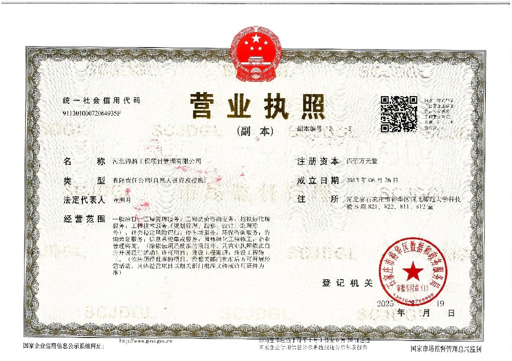 河北锦麟工程项目管理有限公司注册成立于2013 年6 月,注册资金500 万元。具有工程造价咨询甲级、工程咨询甲级、工程监理乙级资质,在招标代理相关部门已进行登记备案,是以有限责任公司方式运行的具有独立法人资格的社会中介服务机构。可承担工程项目管理、工程造价服务、工程审计咨询服务、工程咨询、招标代理、工程监理服务、工程造价纠纷司法鉴定等相关的业务。 公司致力于制度化、正规化建设,已建立了完善的管理制度和工作程序……