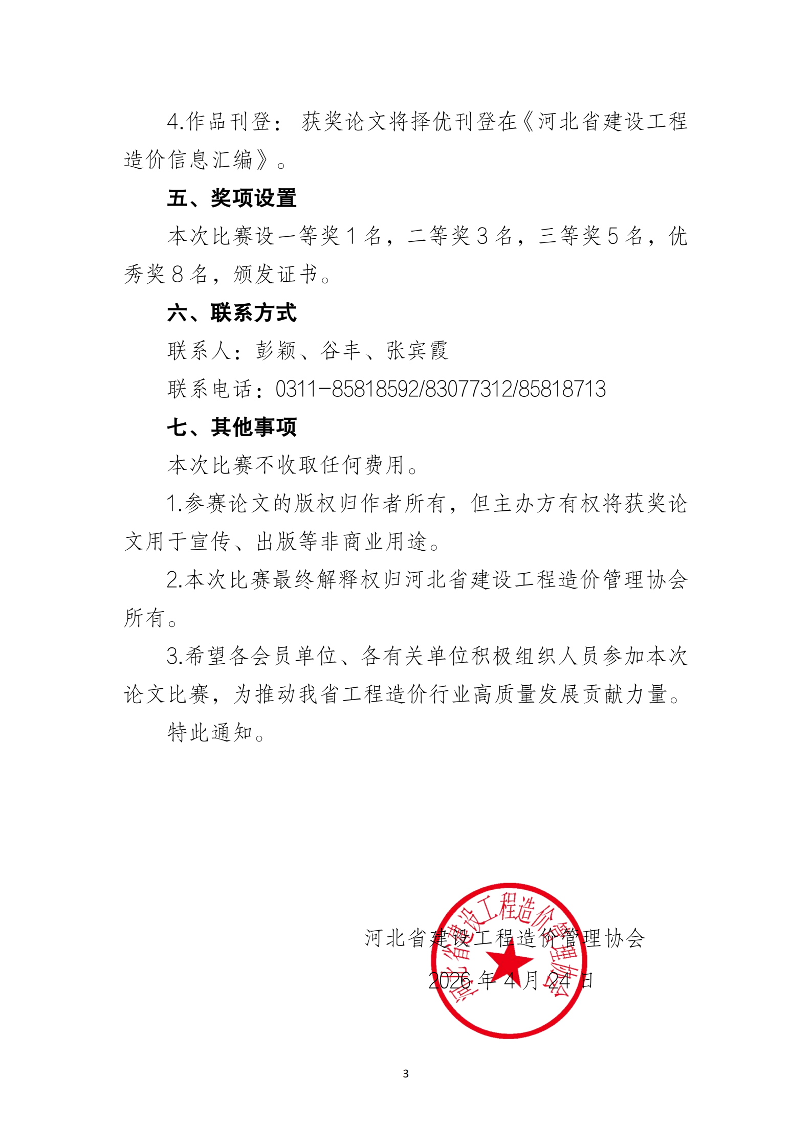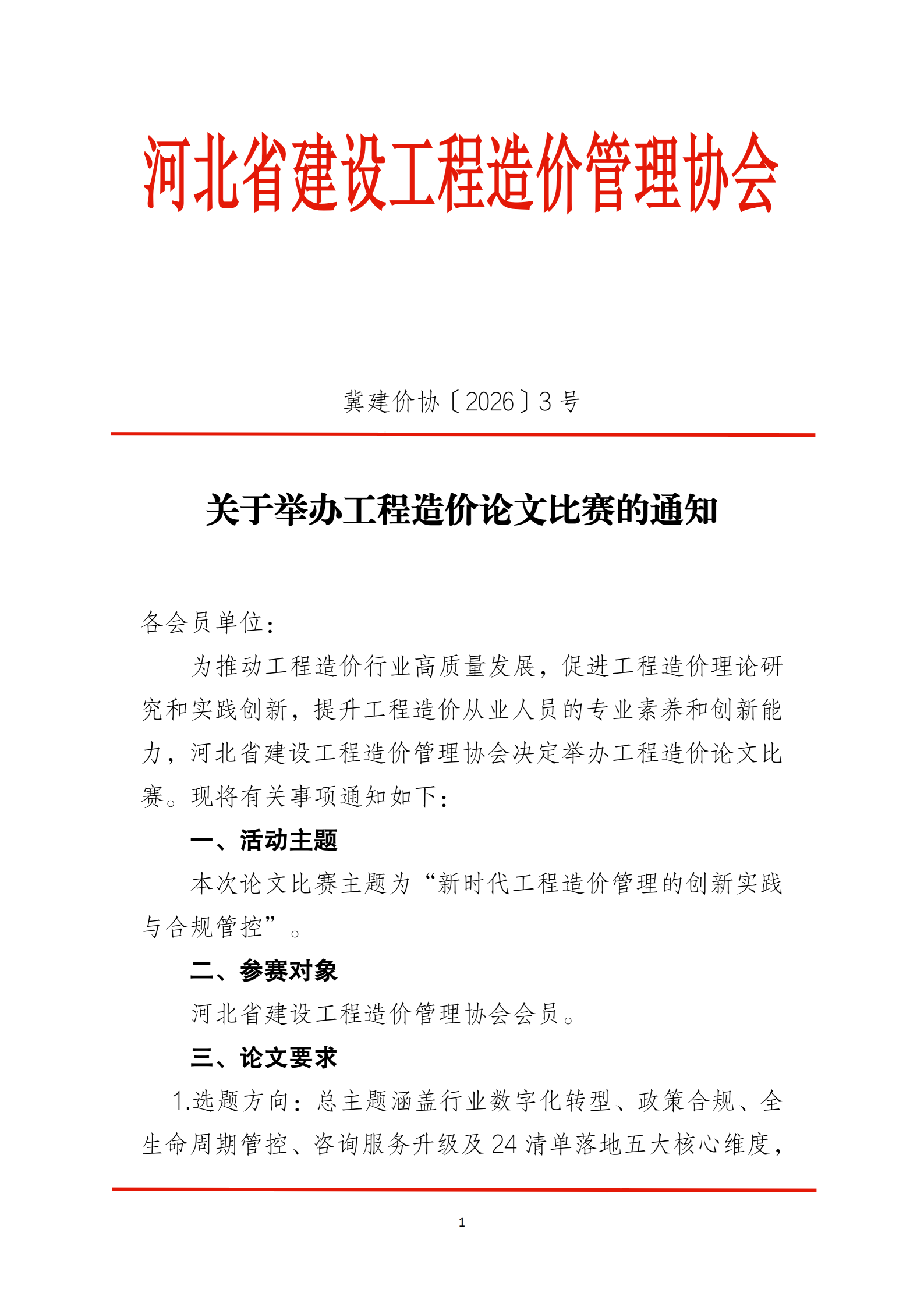 [转]河北省建设工程造价管理协会关于举办工程造价论文比赛的通知